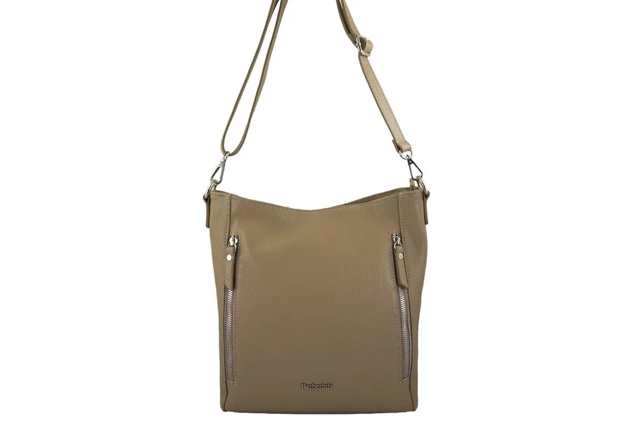 Praktyczna skórzana torebka na ramię w kolorze beżowym ciemnym jest wykonana ze skóry naturalnej licowej. Szukasz wygodnej torebki mieszczącej niezbędne rzeczy do pracy, na uczelnię lub krótki wyjazd? Proponowaną w najnowszej kolekcji wygodnych i pojemnych torebek zaprojektowano tak, aby zmieściła dokumenty, notatki, portfel, telefon oraz kosmetyki. Poręczne wewnętrzne lub zewnętrzne kieszenie doskonale utrzymają porządek wewnątrz i z łatwością znajdziesz to czego szukasz – wszystko będzie na swoim miejscu. Praktyczna skórzana torebka na ramię na wygodnej długości regulowanym pasku to propozycja dla Pań ceniących gustowne dodatki codziennej swobodnej garderoby. Gwarantujemy zadowolenie z zakupionych produktów – najnowsze trendy, stonowane kolory oraz subtelne ozdoby przemawiają za wyborem torebki oraz portfela w naszym sklepie. Wnętrze torebki: praktyczna torebka skórzana na ramię jest wykończona podszewką.
