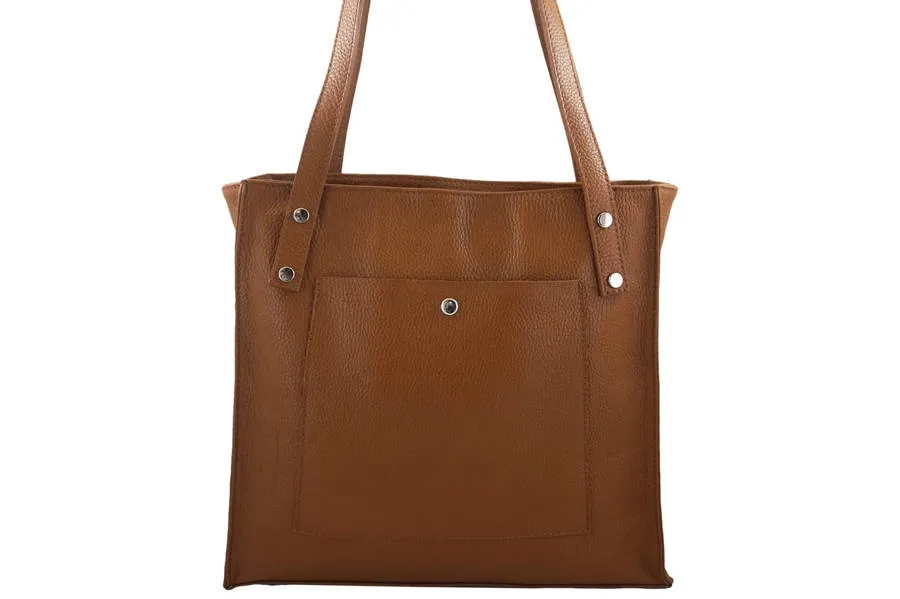 Torebka skórzana na ramię została wykonana ze skóry naturalnej. Propozycja sklepu internetowego w kategorii WORKI – torebka skórzana na ramię, mieszcząca format A4 z ozdobną kieszenią i srebrnym nitami. Pojemna torebka typu shopper mieszcząca najpotrzebniejsze codzienne przedmioty: dokumenty, portfel, organizer oraz telefon. Idealna do pracy lub na uczelnię, w stonowanych kolorach, podkreśli Twoją stylizację. Ofertę kierujemy do kobiet poszukujących klasycznych dodatków codziennej garderoby. Chcesz być na bieżąco z naszymi nowościami, promocjami oraz akcjami rabatowymi? Zapisz się do newslettera i odbierz rabat -15% na zakupy.