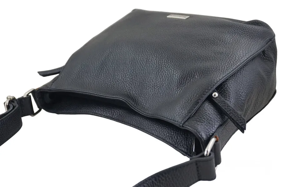 Praktyczna torebka skórzana z kieszeniami w kolorze szarym ciemnym jest wykonana ze skóry naturalnej licowej. W najnowszej kolekcji wygodnych i pojemnych torebek proponujemy wygodną i pojemną torebkę, którą zaprojektowano tak, aby zmieściła dokumenty, notatki, portfel, telefon oraz kosmetyki. Poręczne wewnętrzne lub zewnętrzne kieszenie doskonale utrzymają porządek wewnątrz i z łatwością znajdziesz to czego szukasz – wszystko będzie na swoim miejscu. Praktyczna torebka skórzana z kieszeniami, na wygodnej długości regulowanym pasku to propozycja dla Pań ceniących gustowne dodatki codziennej swobodnej garderoby. Gwarantujemy zadowolenie z zakupionych produktów – najnowsze trendy, stonowane kolory oraz subtelne ozdoby przemawiają za wyborem torebki oraz portfela w naszym sklepie. Wnętrze torebki: praktyczna torebka skórzana z kieszeniami jest wykończona podszewką. Wnętrze podzielone jest na pół dużą zasuwaną kieszenią doszytą do spodu, dodatkowo wyodrębniono miejsce na telefon oraz małą zasuwaną kieszonkę mieszczącą kosmetyki lub portfel.