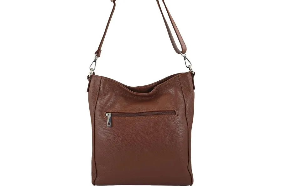 Praktyczna skórzana torebka na ramię w kolorze czarnym jest wykonana ze skóry naturalnej licowej. Szukasz wygodnej torebki mieszczącej niezbędne rzeczy do pracy, na uczelnię lub krótki wyjazd? Proponowaną w najnowszej kolekcji wygodnych i pojemnych torebek zaprojektowano tak, aby zmieściła dokumenty, notatki, portfel, telefon oraz kosmetyki. Poręczne wewnętrzne lub zewnętrzne kieszenie doskonale utrzymają porządek wewnątrz i z łatwością znajdziesz to czego szukasz – wszystko będzie na swoim miejscu. Praktyczna skórzana torebka na ramię na wygodnej długości regulowanym pasku to propozycja dla Pań ceniących gustowne dodatki codziennej swobodnej garderoby. Gwarantujemy zadowolenie z zakupionych produktów – najnowsze trendy, stonowane kolory oraz subtelne ozdoby przemawiają za wyborem torebki oraz portfela w naszym sklepie. Wnętrze torebki: praktyczna torebka skórzana na ramię jest wykończona podszewką.