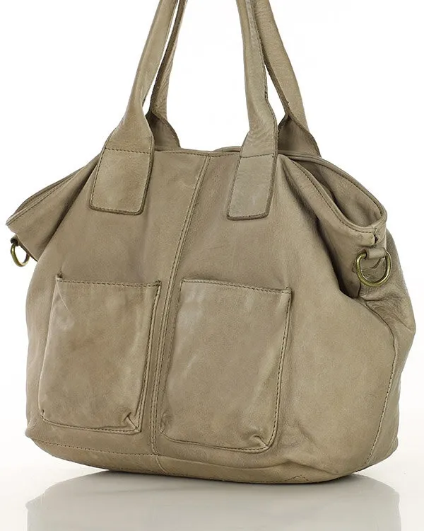 Shopperka skórzana MARCO MAZZINI beżowa taupe v169e