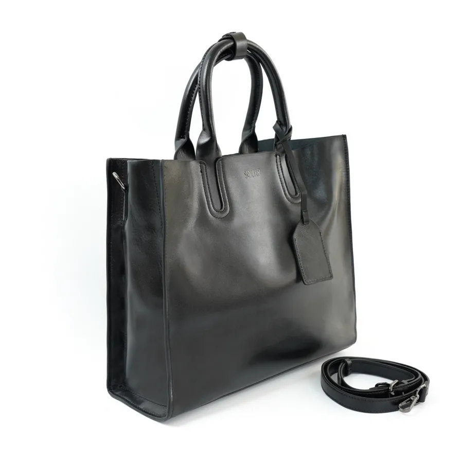 Elegancka torebka polskiej marki SHE wykonana z najwyższej jakości skóry naturalnej. Idealna na codzienne wyjście do pracy, na spacer, czy kolację. Wnętrze kryje 2 komory oddzielone przegrodą na zamek, dodatkowo posiada dwie kieszenie – na telefon oraz zamykaną na zamek. Wymiary: Wysokość – 24 cm Szerokość – 32 cm Głębokość – 10 cm Długość rączek – 38 cm Długość paska – max. 140 cm