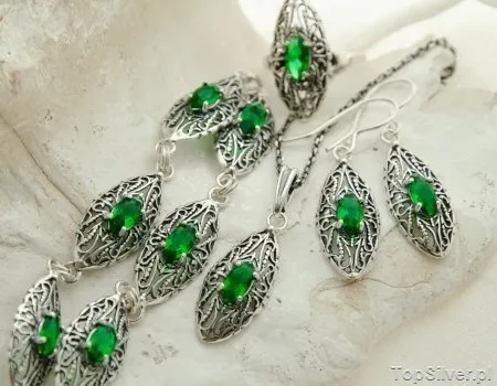 BOCONO - srebrny komplet ze szmaragdem