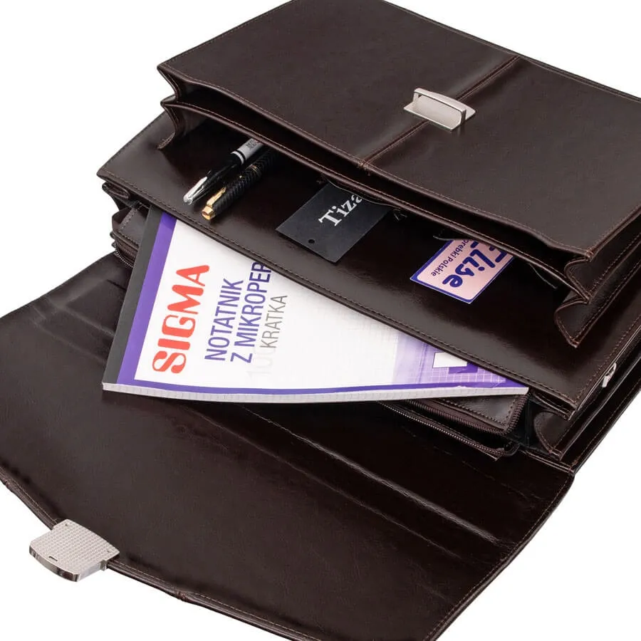 - wewnątrz aktówki znajduje się organizer i kieszonka na klucze bądź telefon