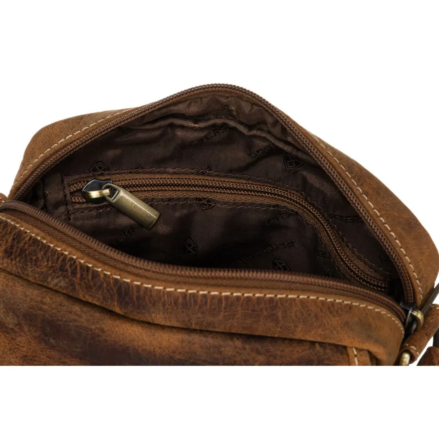 Elegancka, skórzana listonoszka męska w brązowym kolorze zamykana suwakiem PTN 1903-TUM Peterson
