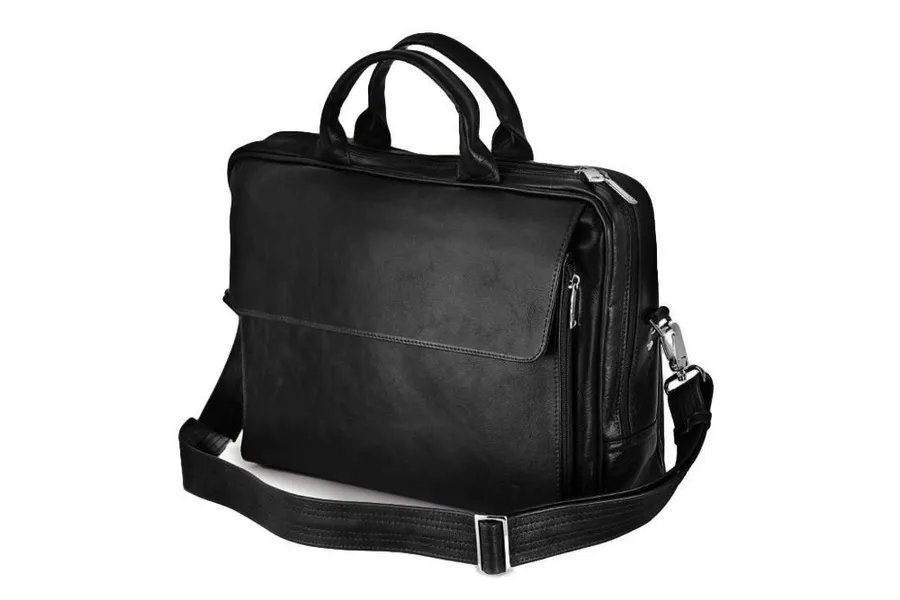 Skórzana torba męska na ramię, torba na laptop SOLIER czarna
