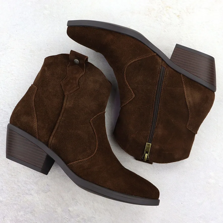 Skórzane botki damskie kowbojki czekoladowe Big Star SS274463