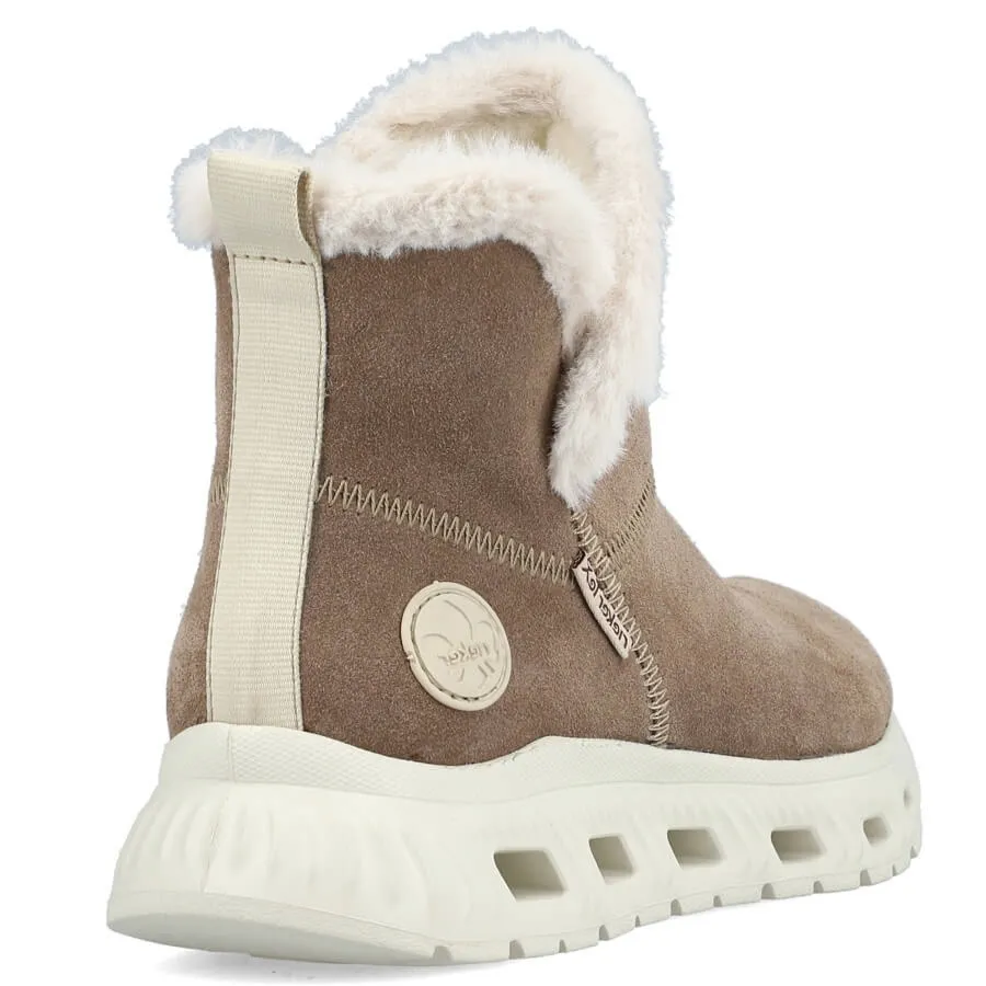 Wodoodporne skórzane botki damskie śniegowce beżowe Rieker M6050-64
