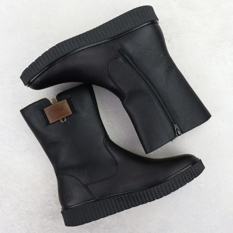 Skórzane botki damskie na koturnie czarne Rieker X9165-01