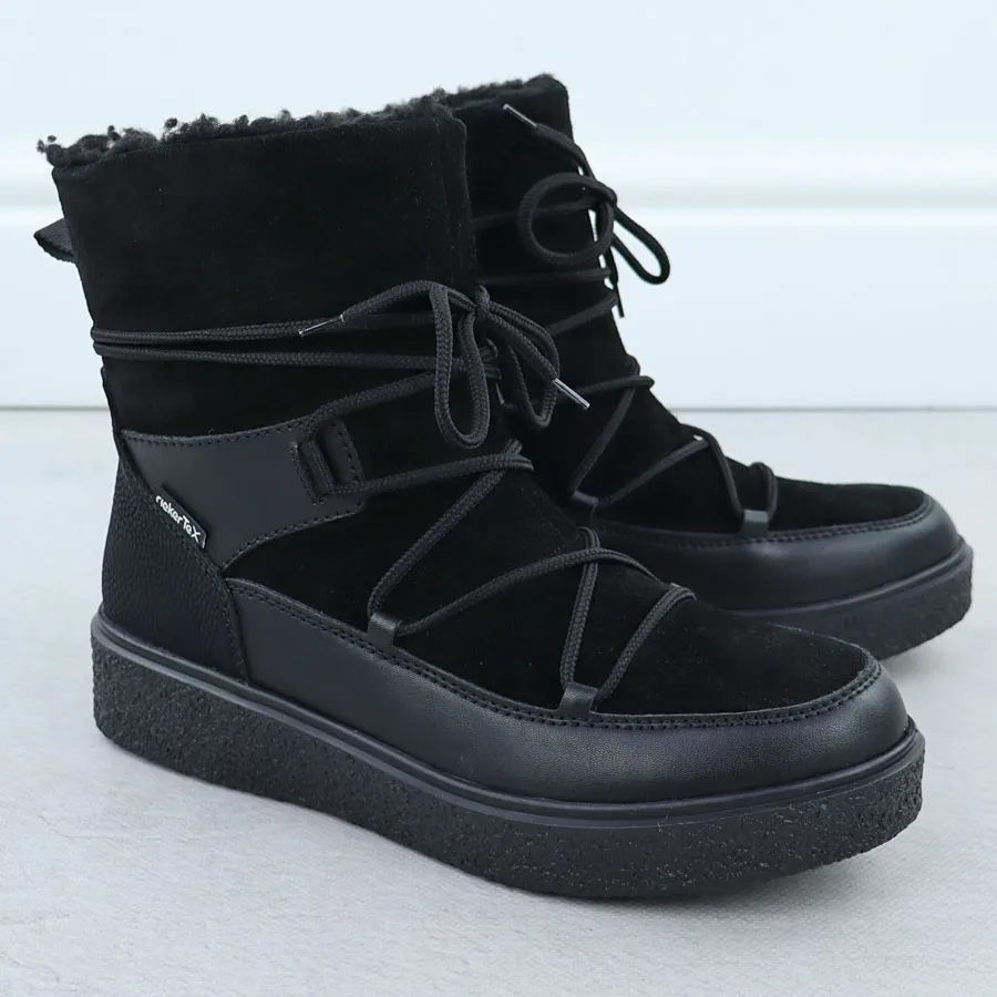 Skórzane botki damskie na platformie czarne Rieker Y0051-00