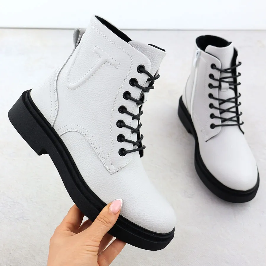 Skórzane botki damskie workery białe Sergio Leone BT25248-S