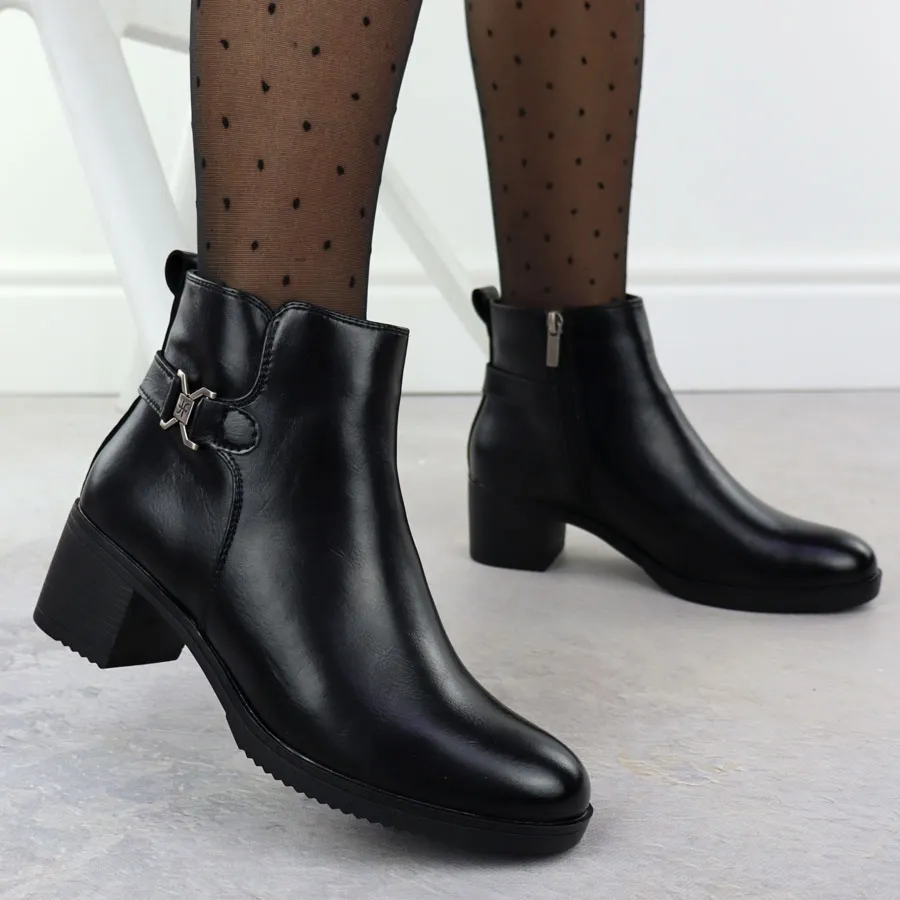 Skórzane botki damskie na klocku czarne T.Sokolski Z25-218
