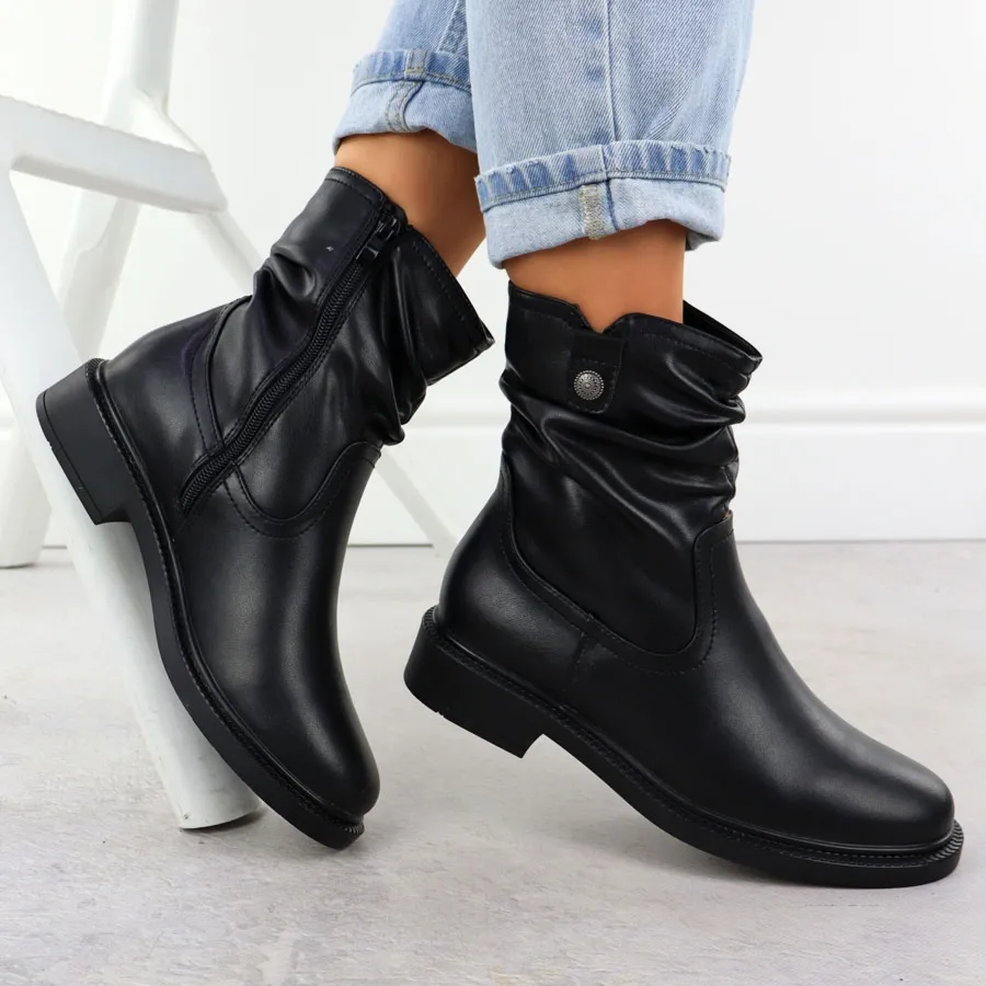 Skórzane botki damskie marszczona cholewka czarne Sergio Leone BT25722