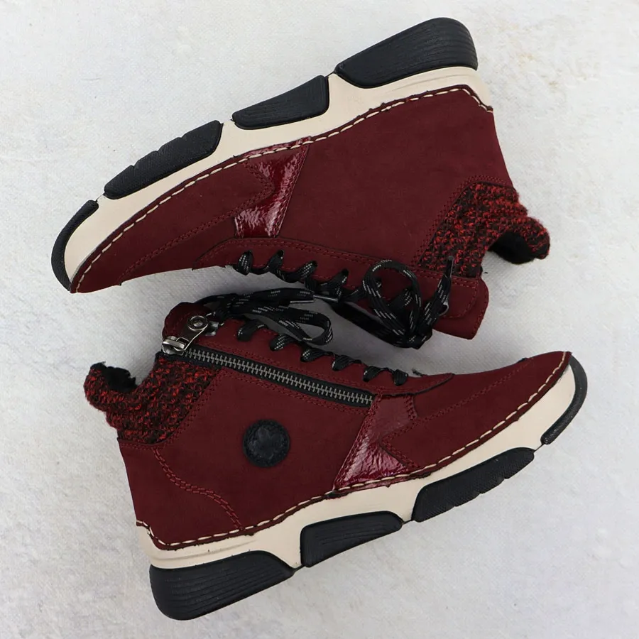 Botki damskie zamszowe bordowe Rieker 45960-35