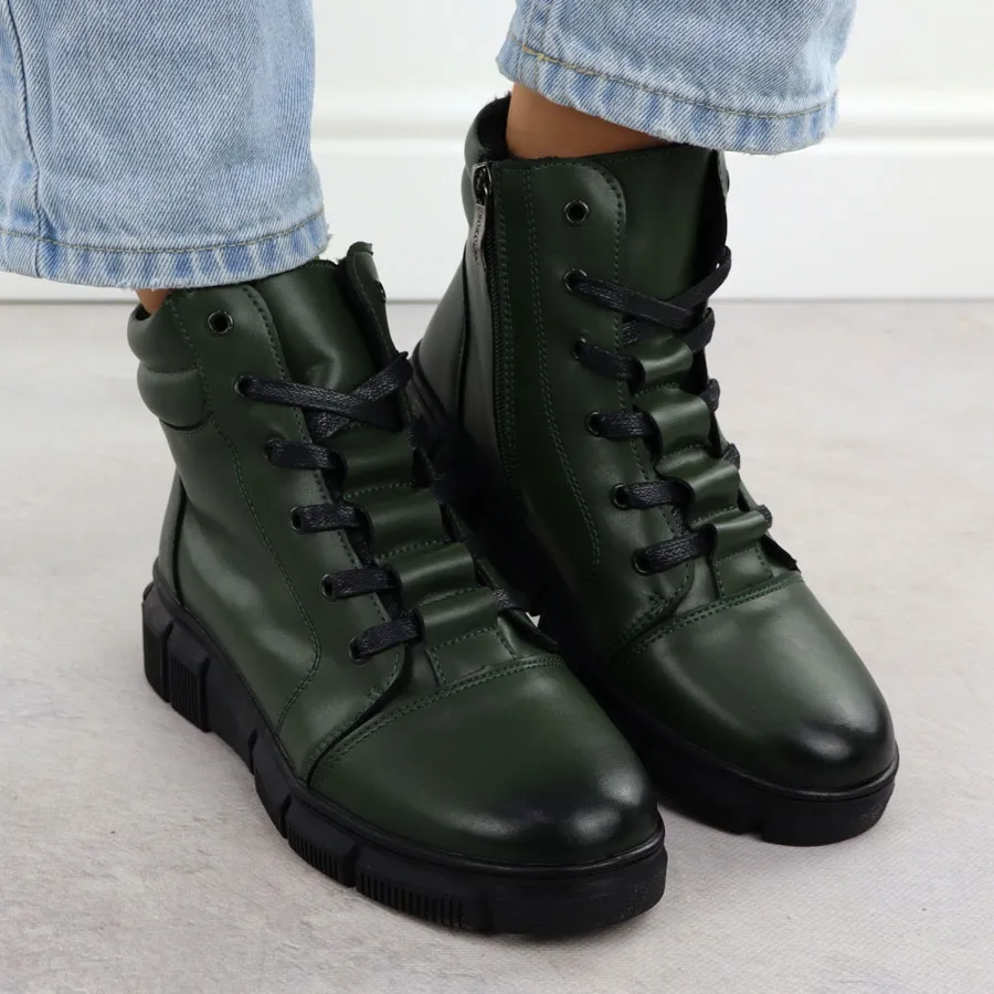 Skórzane botki damskie na podwyższeniu zielone T.Sokolski Z25-250