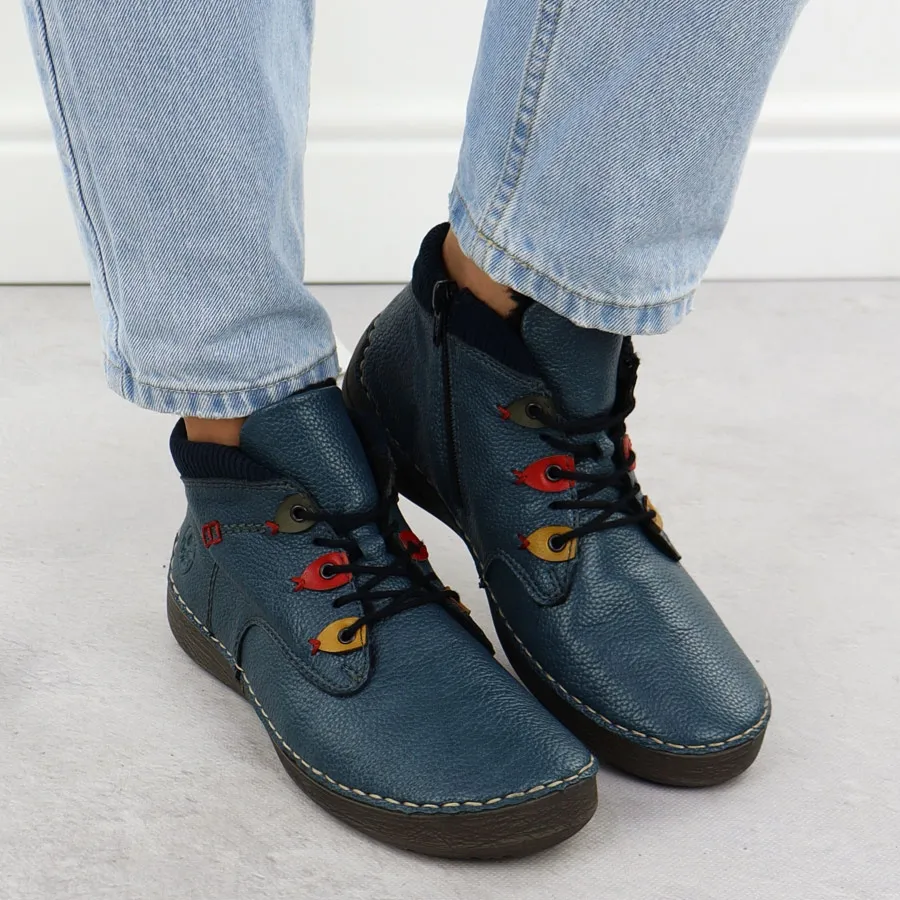 Botki damskie ocieplane komfortowe niebieskie Rieker 52544-14