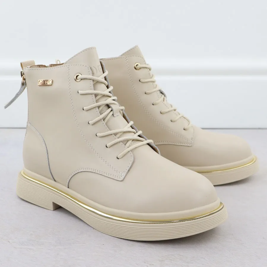 Skórzane botki damskie workery beżowe Goe SS2N4100