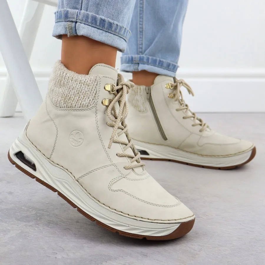 Botki damskie ocieplane trapery beżowe Rieker 44555-60