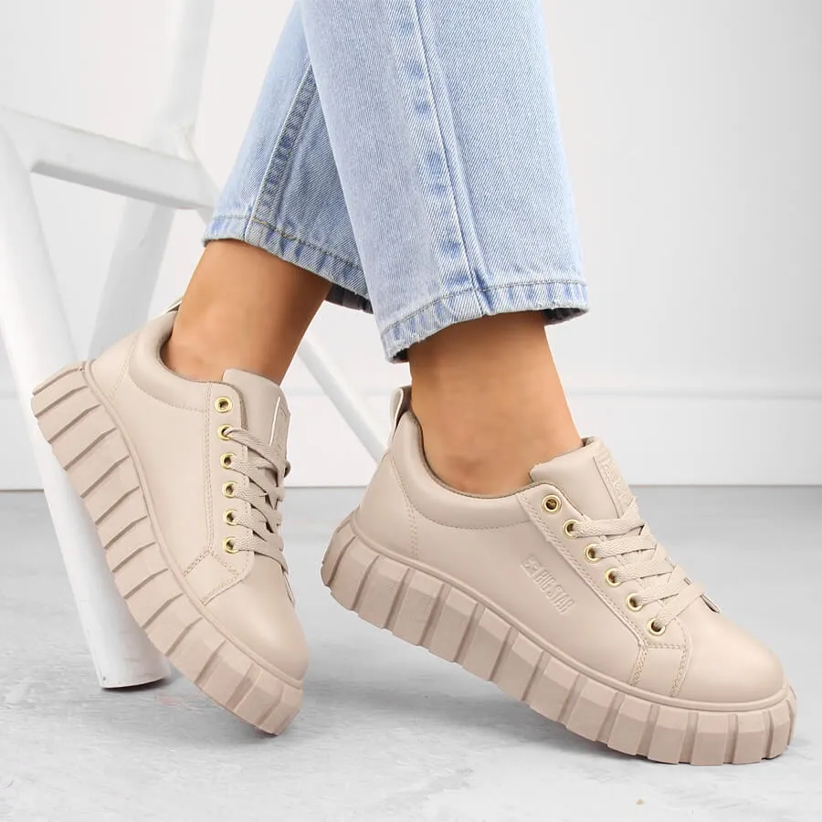 Półbuty damskie na platformie sznurowane beżowe Big Star MM274618