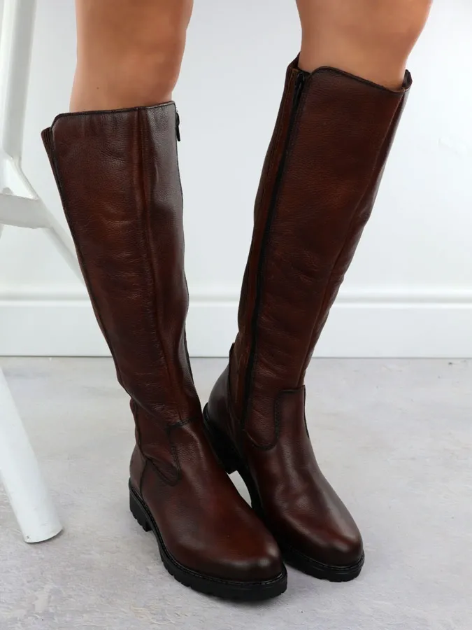 Kozaki damskie na słupku ocieplane brązowe Sergio Leone 25738