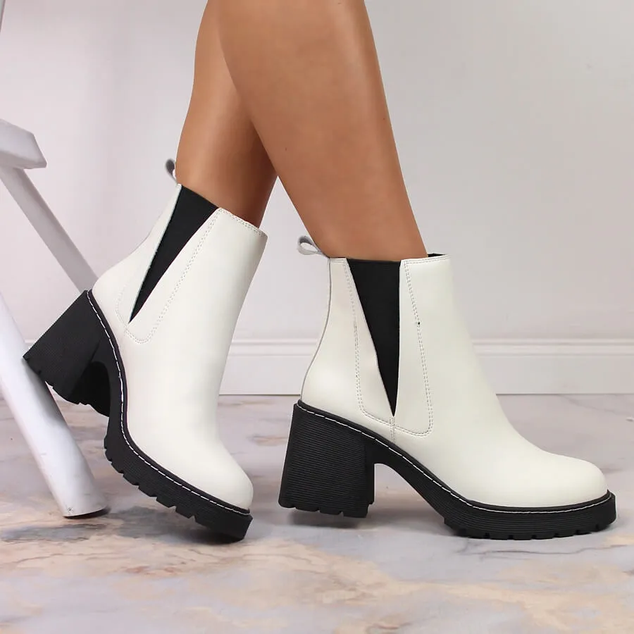 Skórzane sztyblety na słupku wsuwane ocieplane białe Artiker