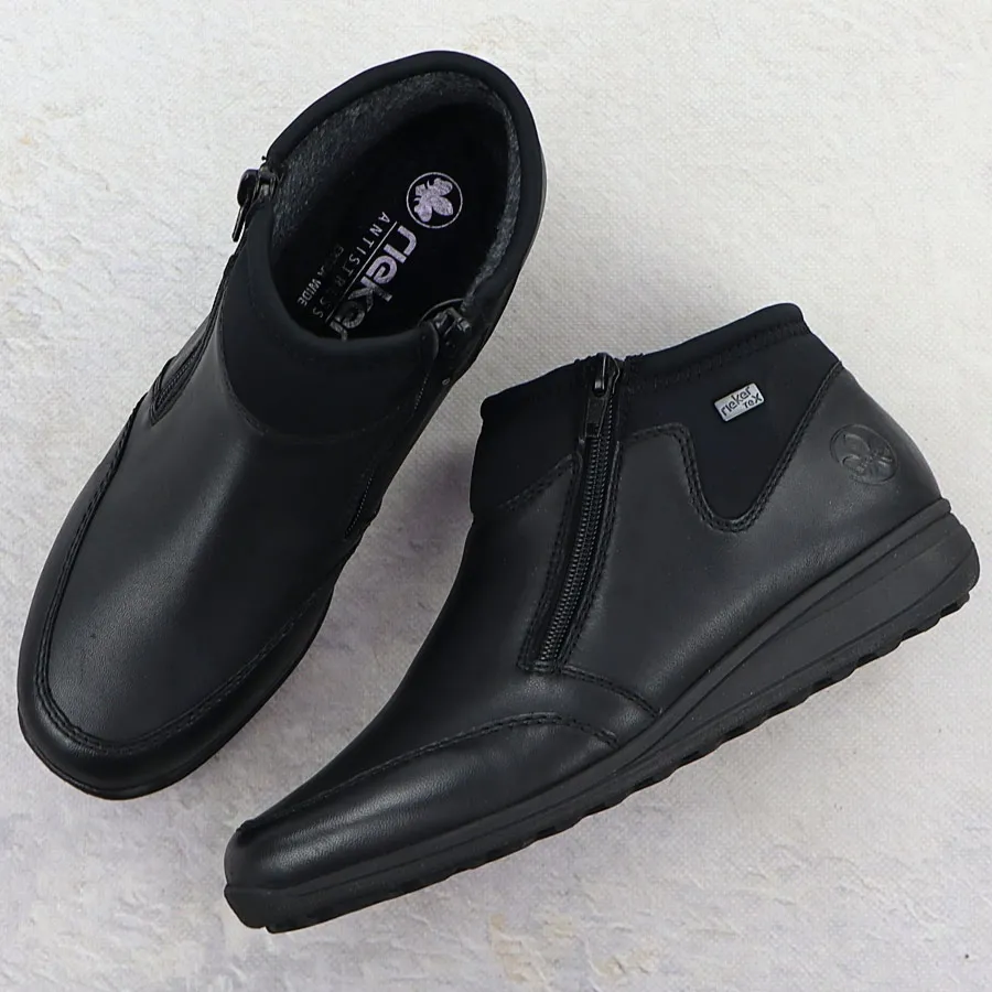 Skórzane wodoodporne botki damskie komfortowe czarne Rieker 47270-00