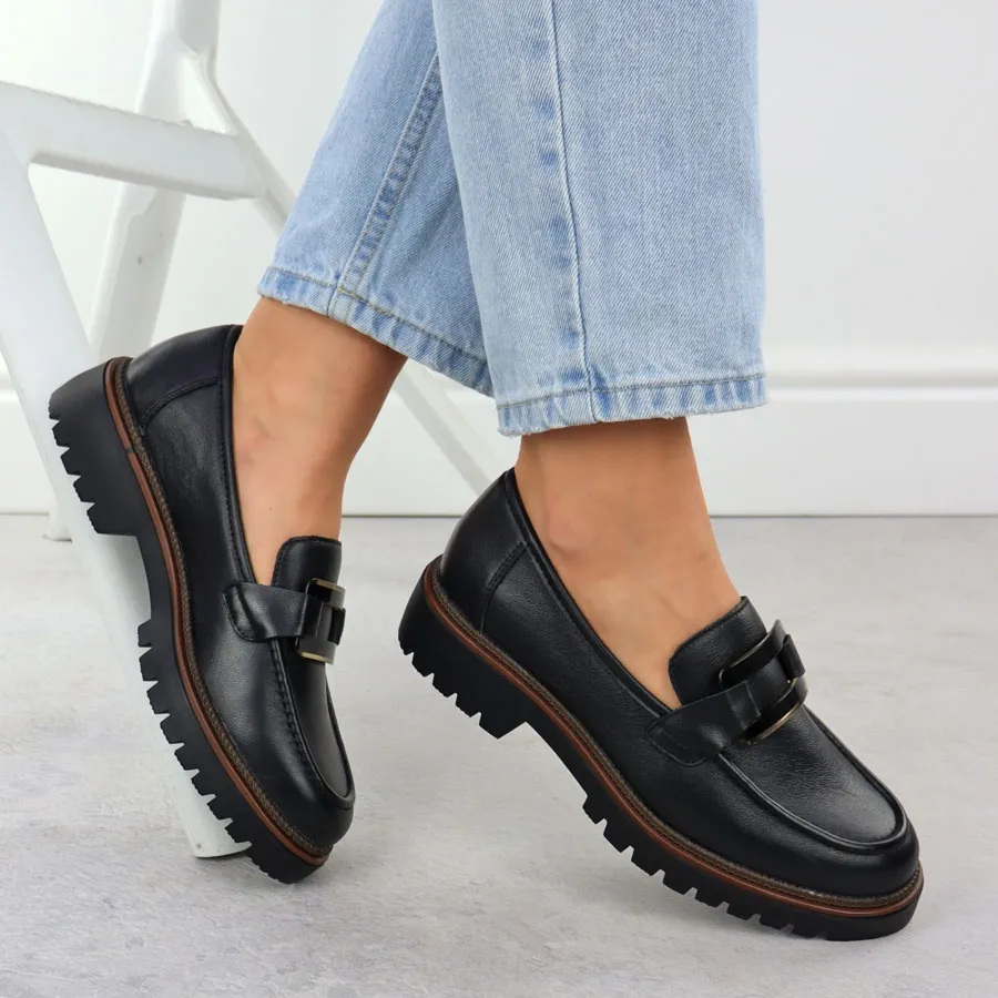 Skórzane mokasyny lordsy na platformie damskie czarne Sergio Leone MK25166-S