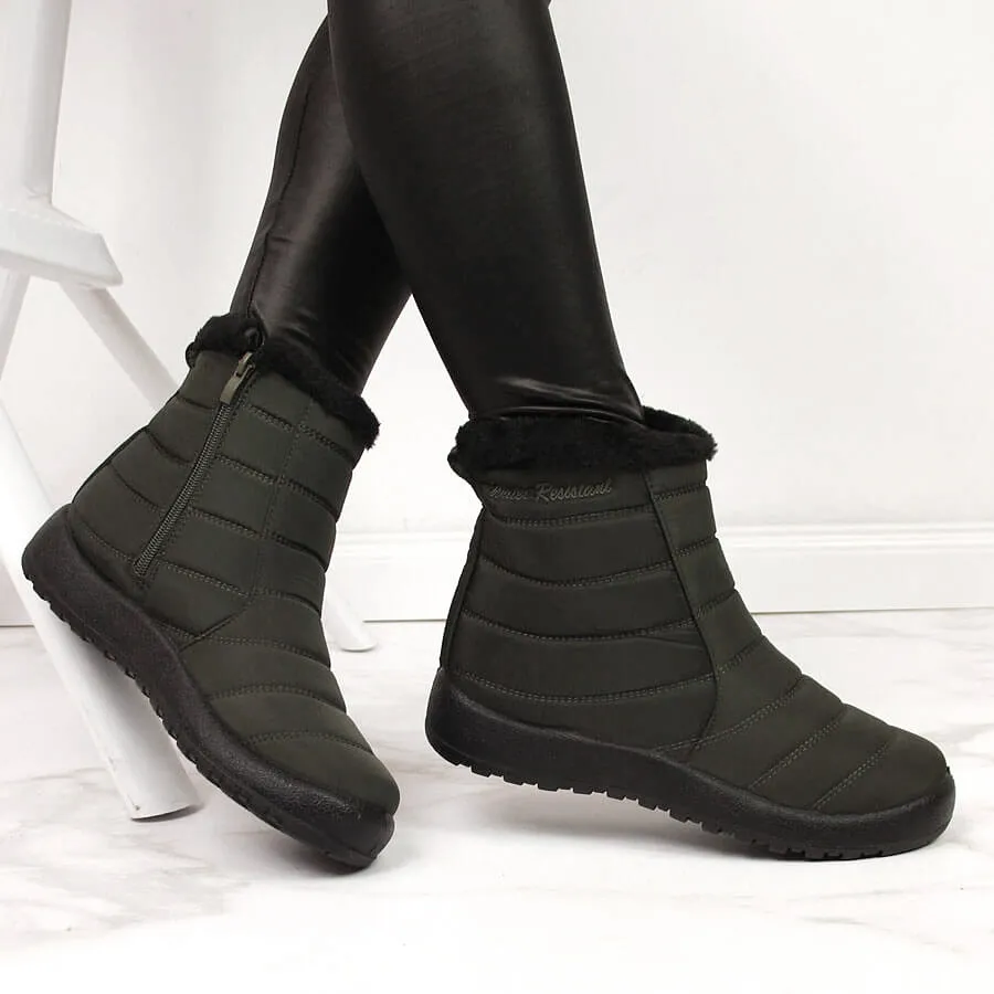 Wodoodporne śniegowce botki damskie ocieplane na zamek zielone News 1467