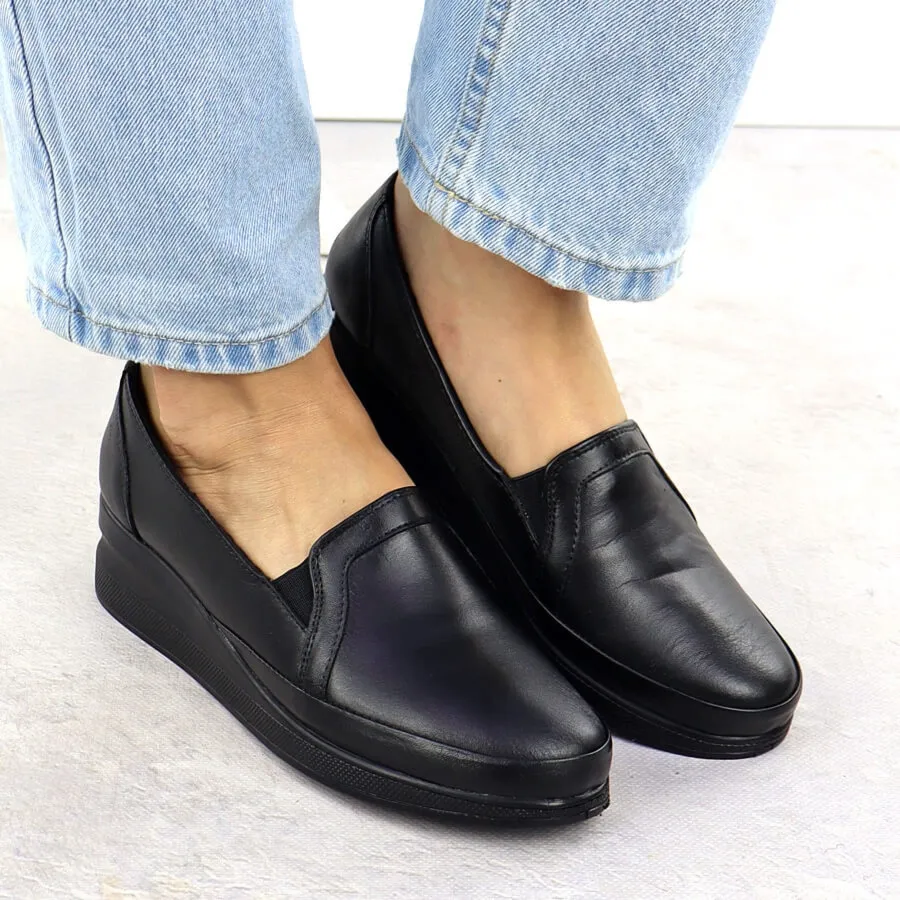 Skórzane półbuty damskie na koturnie ocieplane czarne T.Sokolski V-10