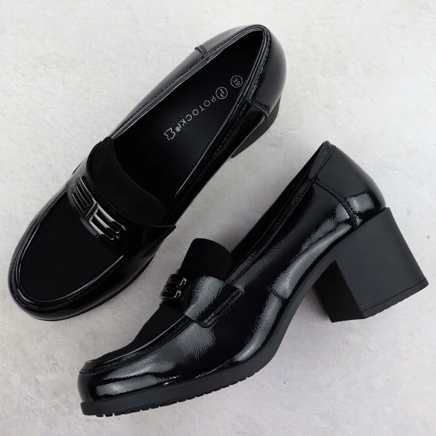 Półbuty damskie lordsy na klocku lakierowane czarne Potocki 25-12677