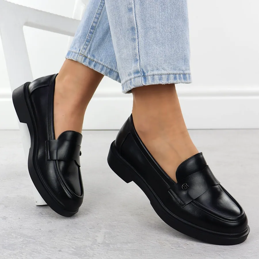 Półbuty damskie mokasyny lordsy czarne Potocki JE19332
