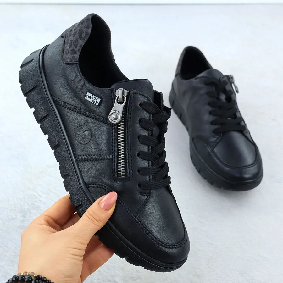 Skórzane półbuty damskie sportowe czarne Rieker N1301-01
