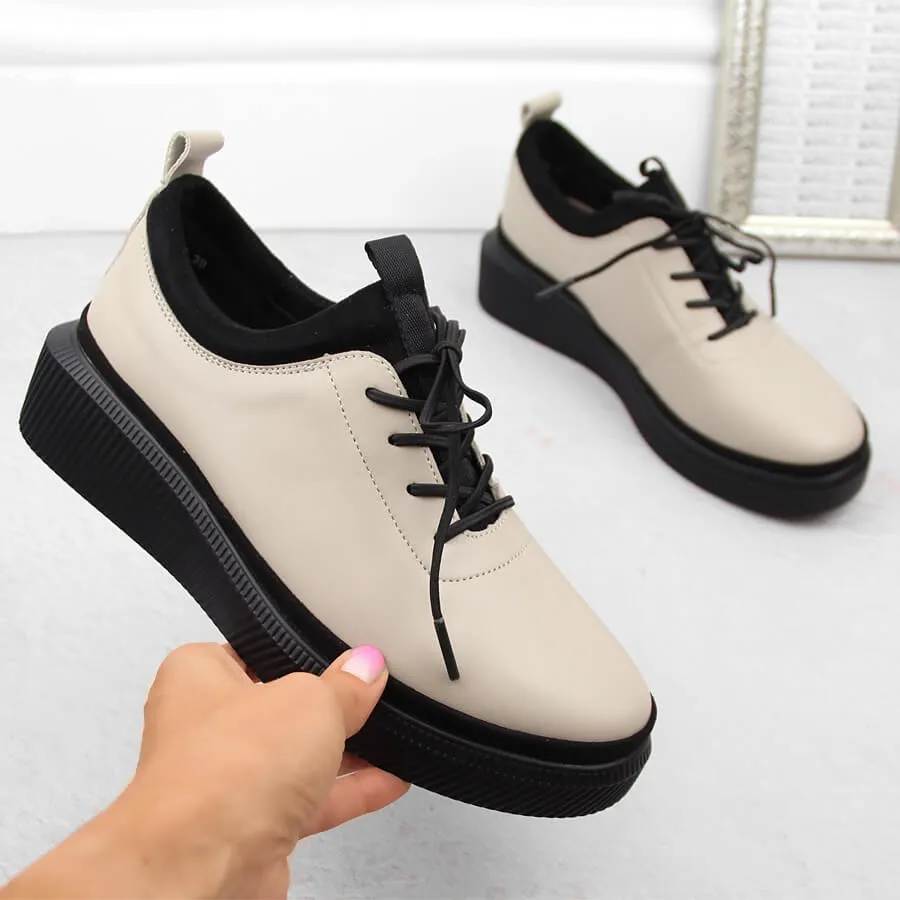 Skórzane półbuty damskie wsuwane beżowe T.Sokolski J25-321