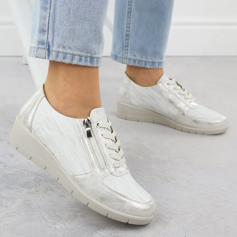 Półbuty sportowe na koturnie srebrne Sabatina LH01