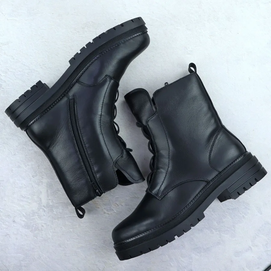 Skórzane wodoodporne botki damskie ocieplane z membraną RIEKER Z7171-01