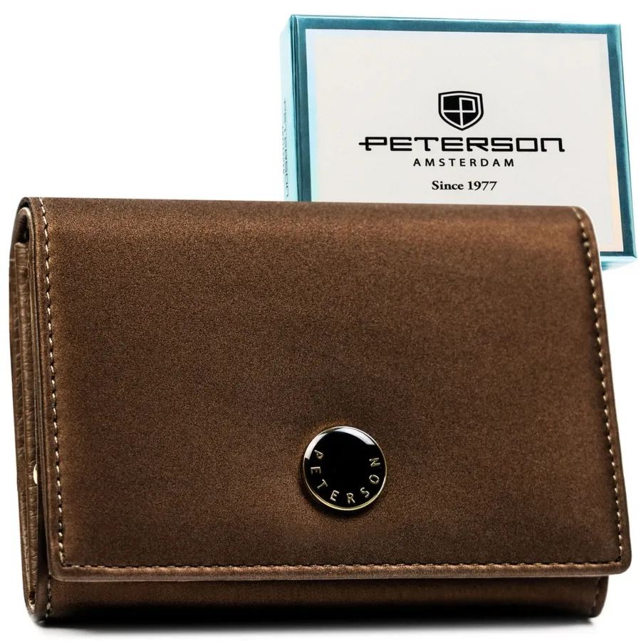 Brązowy portfel damski odszyty ze skóry naturalnej i ekologicznej PTN PS445-HNL Peterson