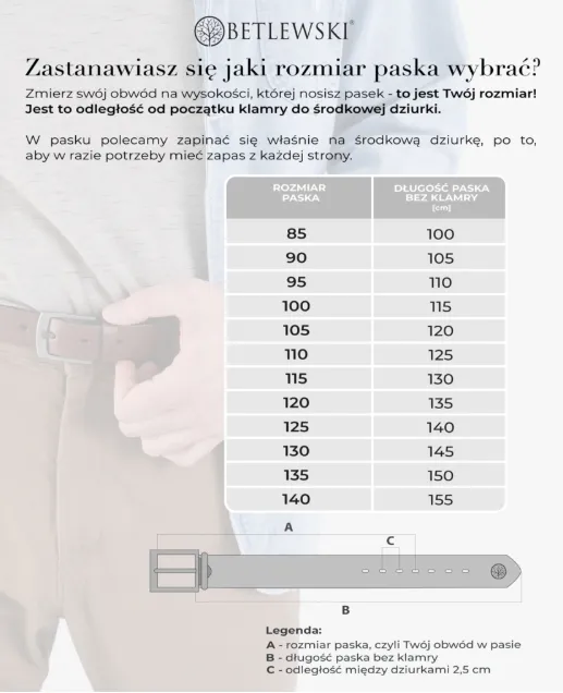 Skórzany pasek BETLEWSKI LIC35-0 GNGRANAT 140