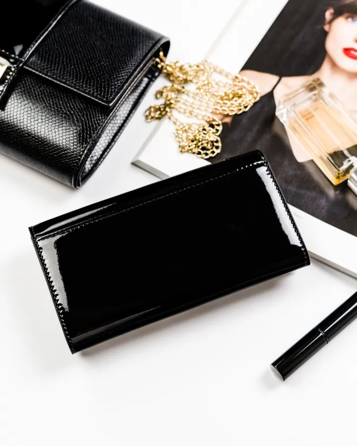 Lakierowany portfel skórzany Peterson PTN BC-411-1674 BLAC czarny