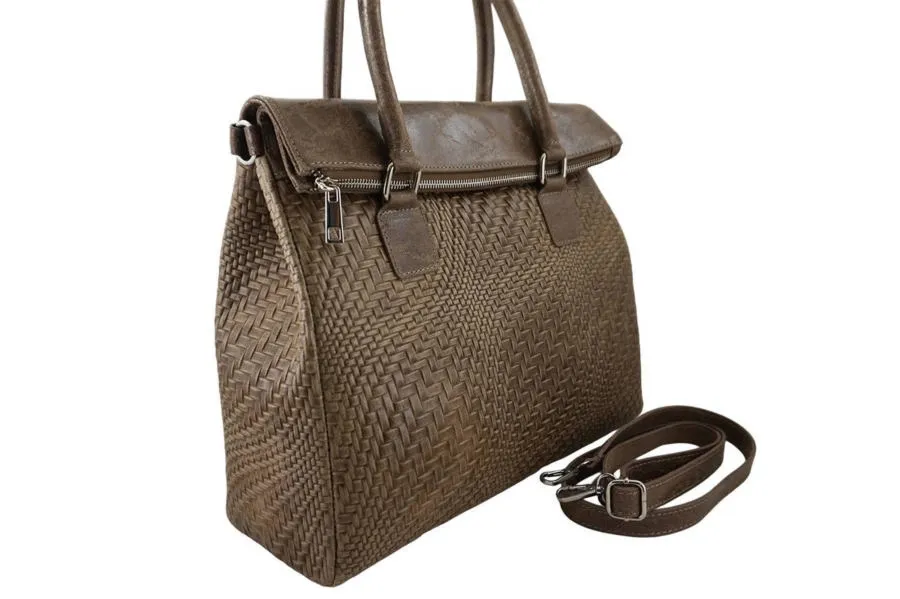 Elegancka torebka do pracy w czarnym kolorze jest wykonana ze skóry naturalnej licowej, lekko usztywnionej. W najnowszej kolekcji torebek klasycznych mieszczących format A4 elegancka torebka do pracy, skórzana, na wygodnej długości uchwytach na ramię, z modnym geometrycznym tłoczeniem skóry naturalnej. W ofercie naszego sklepu z galanterią skórzaną Dla Niej i Dla Niego szeroki wybór produktów z najwyższej jakości skóry licowej lub zamszowej, z subtelnymi dodatkami, w szerokiej palecie kolorystycznej. Oferowane przez nas produkty zaprojektowano tak, aby mieściły potrzebne rzeczy do pracy np. dokumenty, notatki, organizer lub notebook. Poręczne wewnętrzne lub zewnętrzne kieszenie doskonale uporządkują drobne rzeczy, np. klucze, portfel, telefon oraz kosmetyki. Elegancka torebka do pracy to propozycja dla Pań ceniących gustowne dodatki codziennej garderoby, zwracających uwagę na jakość i estetykę wykonania produktu ze skóry naturalnej. Gwarantujemy zadowolenie z zakupionych torebek oraz portfeli oraz szybką wysyłkę Państwa zamówienia.