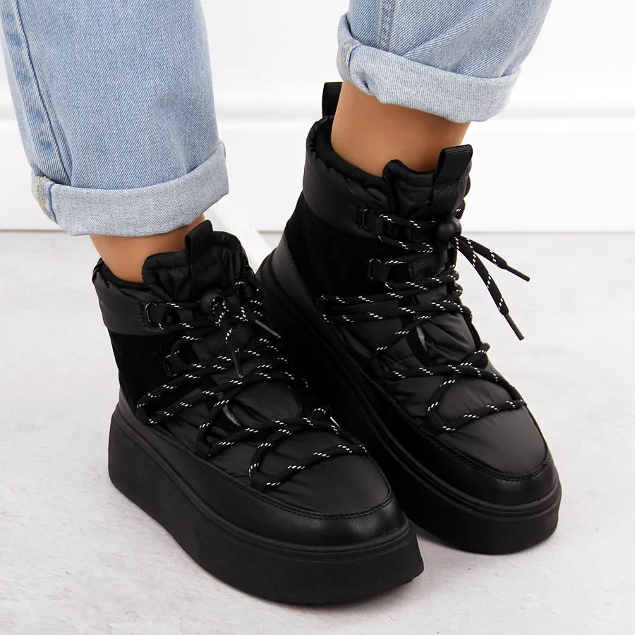 Śniegowce damskie botki na platformie czarne Potocki 72302