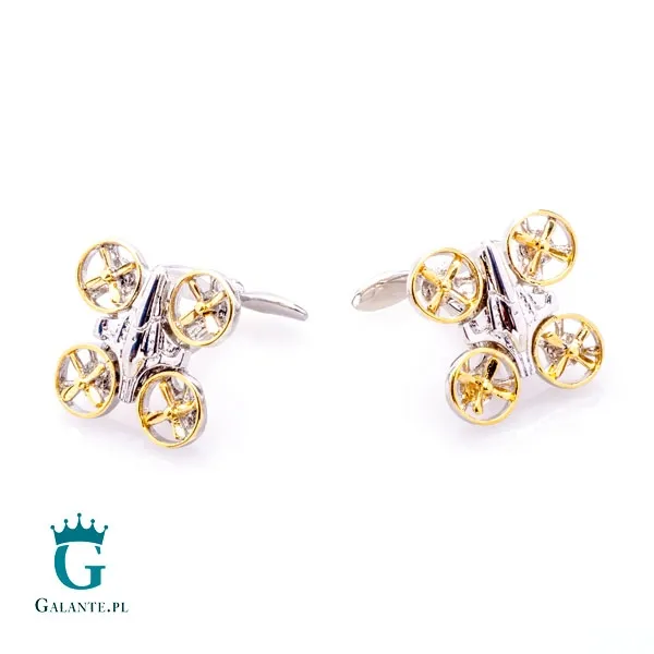 Spinki do mankietów Srebrno-Złote Drony X2 AJA1027