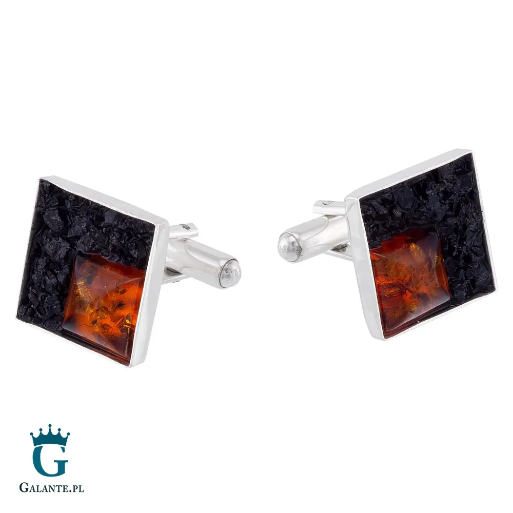 Srebrne spinki do mankietów Bursztyn i Bryłki Węgla SMW-024