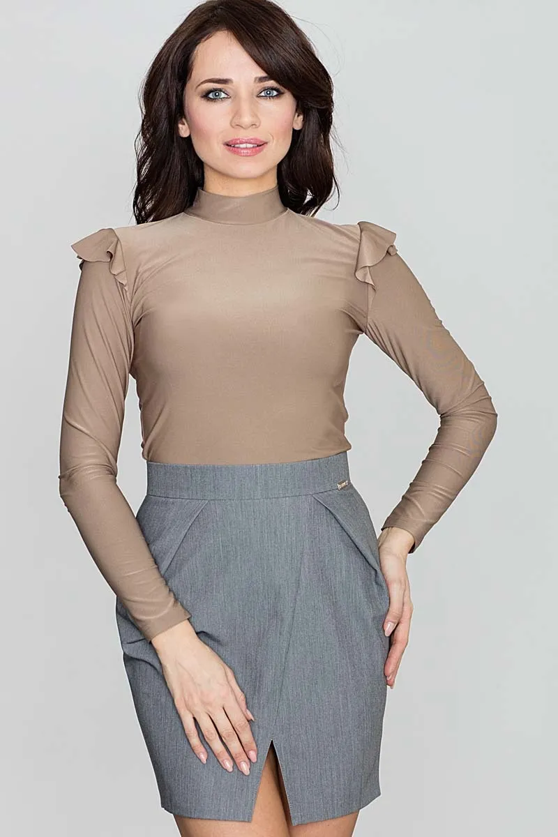 Szara Spódnica Ołówkowa z Asymetrycznym Rozporkiem