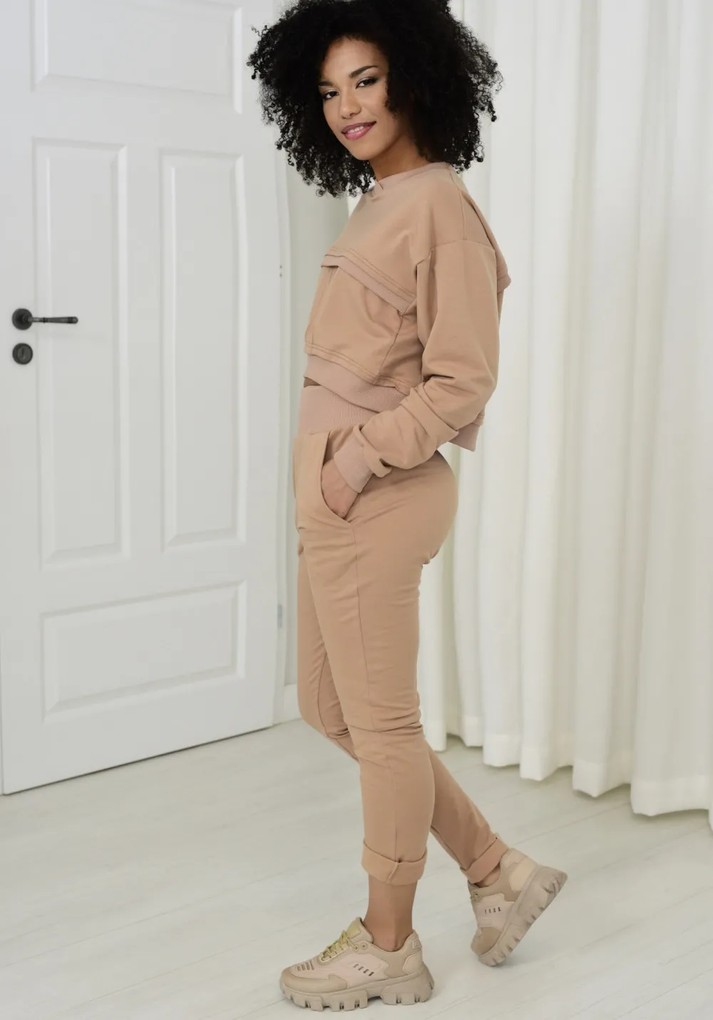 Beżowe spodnie Dagne świetnie komponują się ze sportowym obuwiem. Mają modny i wygodny krój, dzięki czemu sprawdzą się zarówno w sportowych, jak i casualowych outfitach. Model ma szeroką gumę w pasie, dwie praktyczne kieszenie oraz podwinięte nogawki. Warto zaznaczyć, że spodnie zostały uszyte z bawełny z dodatkiem elastanu, dzięki czemu będą się bardzo dobrze nosić. Skład: 92% cotton, 8% elastan WYMIARY SPODNI XS/S M/L XL/2XL 1/2 TALIA GUMA 29 33 37 1/2 BIODRA 46 50 54 1/2 TALIA 41 45 49 DŁUGOŚĆ SPODNI 94 94,5 95 DÓŁ 15 17,4 19.8 WYMIARY CIAŁA XS S M L XL XXL BIUST 82-85 86-89 90-93 94-97 98-101 102-105 TALIA 66-69 70-73 74-77 78-81 82-85 86-89 BIODRA 92-95 96-99 100-103 104-107 108-111 112-115