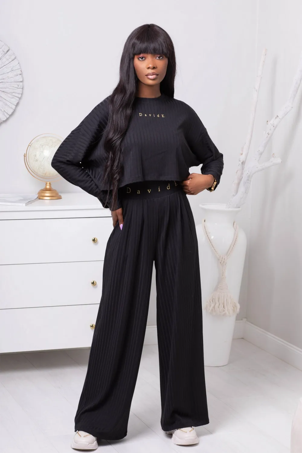 Czarne spodnie damskie z szerokimi nogawkami. Jesteśmy pewni, że ten model posłuży Ci dłużej niż jeden sezon. Został wykonany z prążkowanego materiału wysokiej jakości. Wysoki stan fantastycznie wyeksponuje wcięcie w talii, a luźne nogawki wysmuklą dolne partie sylwetki. Spodnie na gumce połącz ze sweterkiem i sneakersami. Tkanina z jakiej zostały uszyte jest bardzo miła i przyjemna w dotyku . Spodnie po praniu delikatnie się kurczą ale pod wpływem wyprasowania genialnie wracają do swojego pierwotnego kształtu nie tracąc swoich wymiarów. Guma w opasie elastyczna i świetnie dopasuje się do każdej sylwetki . Spodnie mogą być troszkę za długie dla bardzo niskich osób ale po szybkim skróceniu nie tracą swojego fasonu.