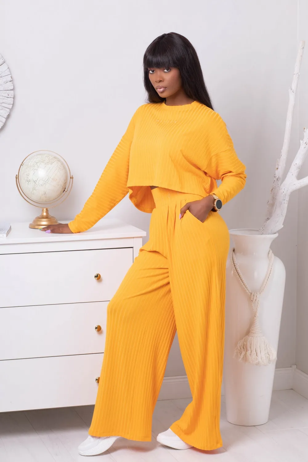 Spodnie w prążek z wysokim stanem Arely żółty 124