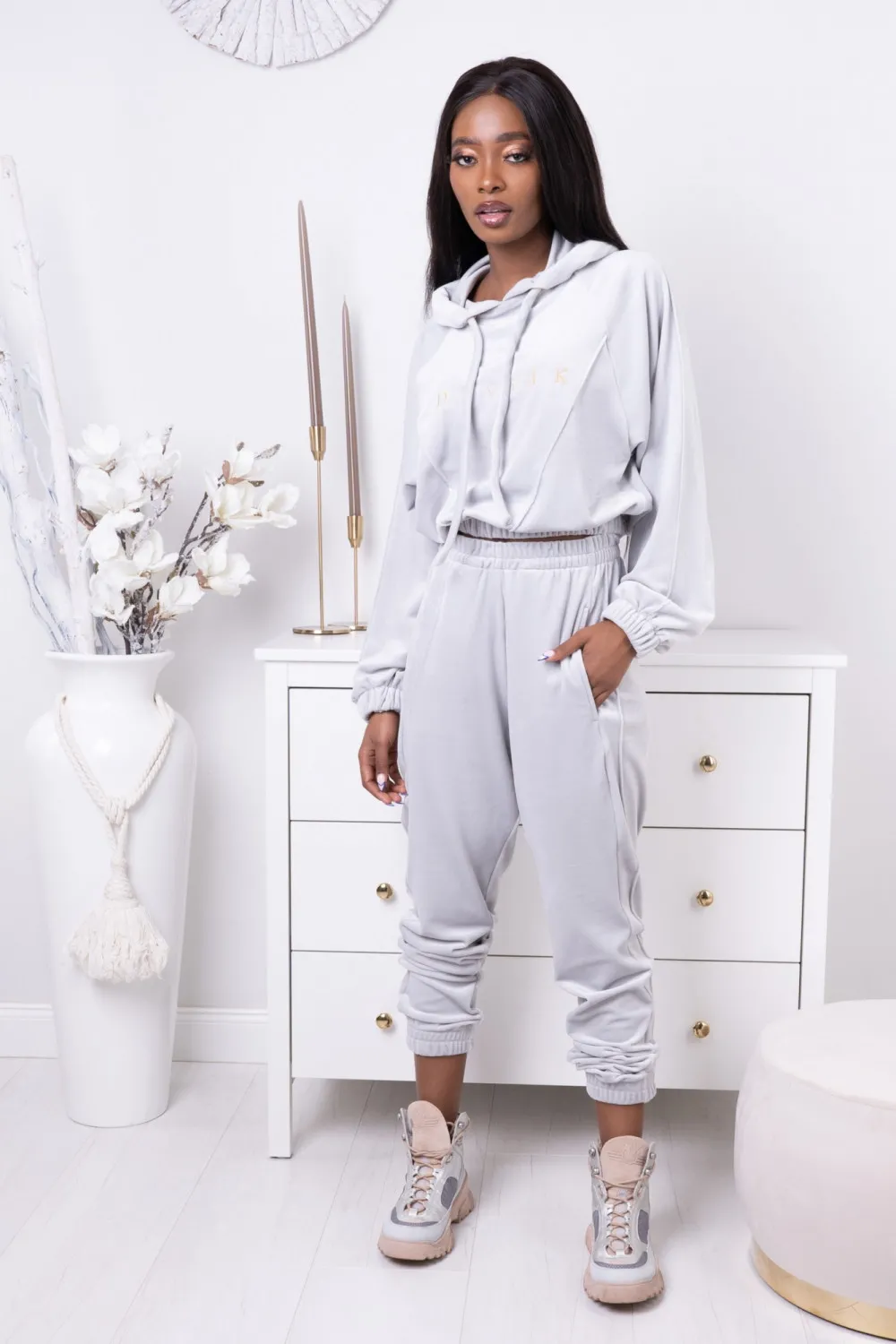 Spodnie welurowe z kieszeniami Fabia szare 104