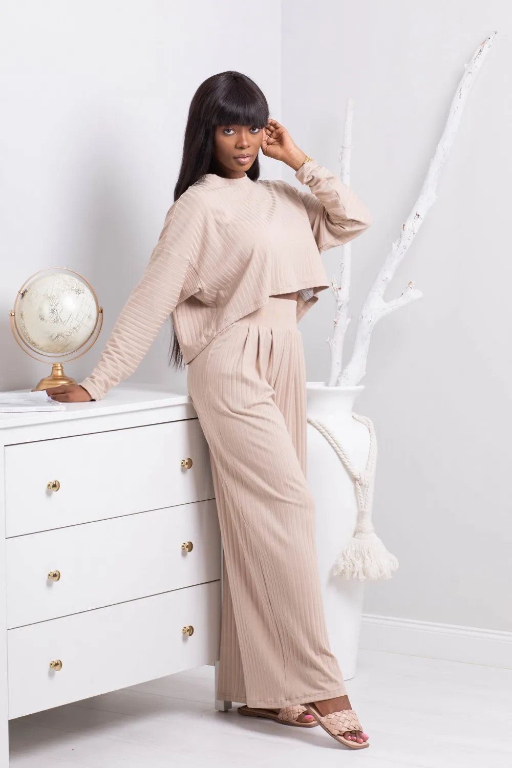 Spodnie w prążek z wysokim stanem Arely beż 124