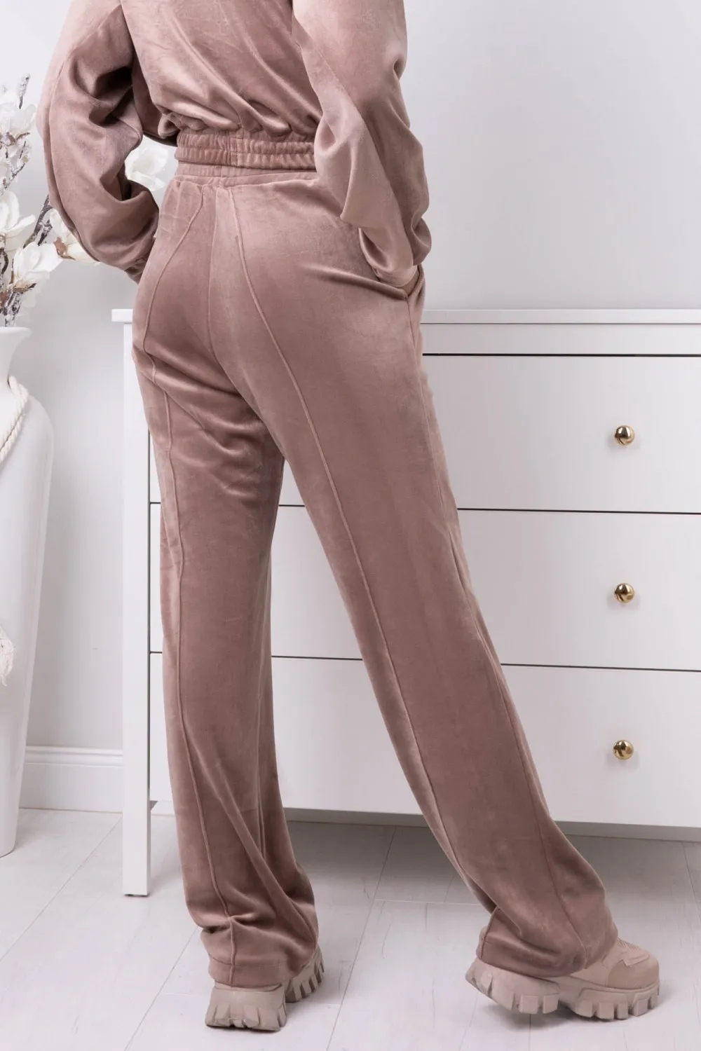 Spodnie welurowe z szerokimi nogawkami Luzia ciemny beż 101