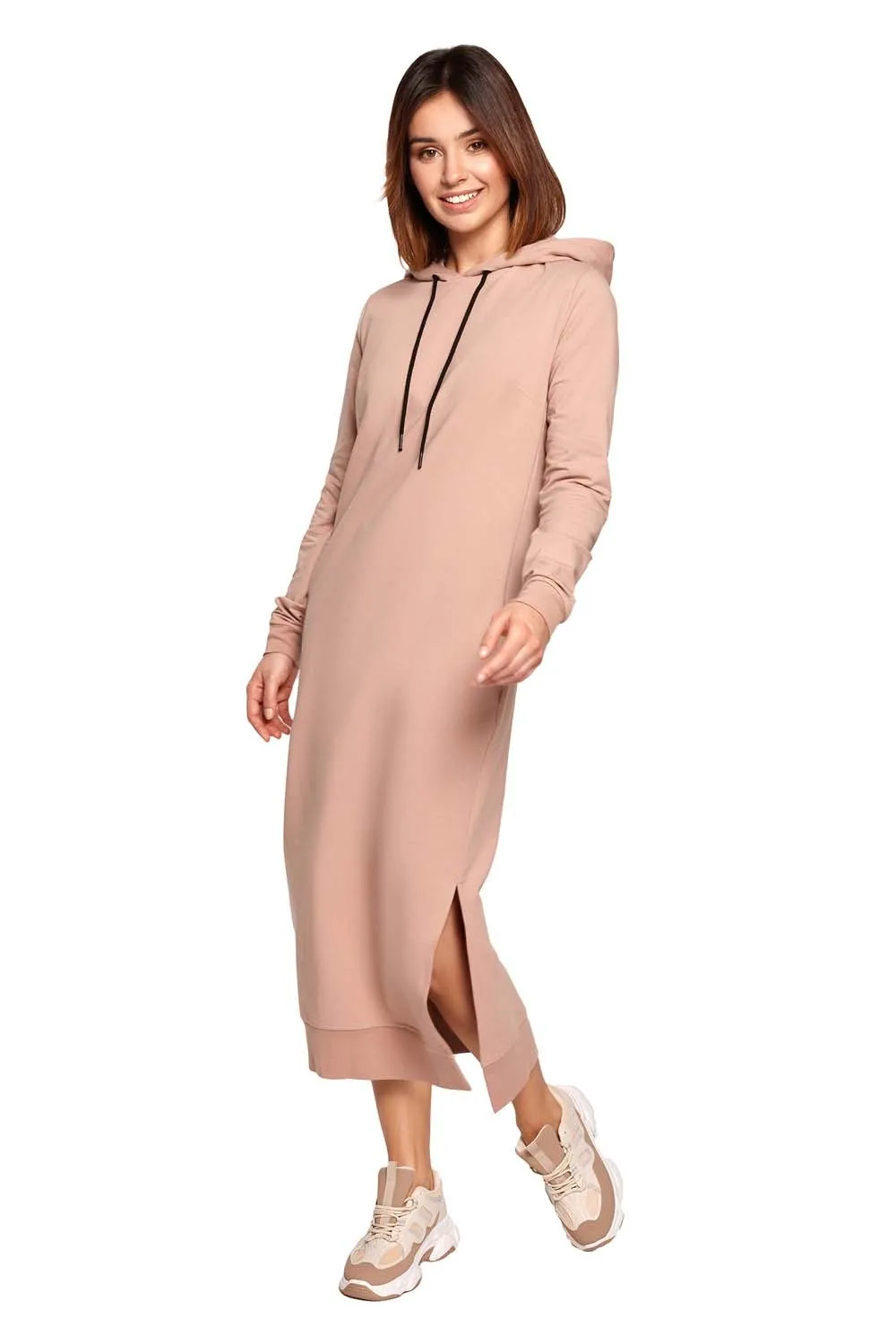 Sportowa Midi Sukienka z Kapturem - Mocca